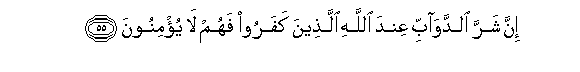55. Inna sharra alddawabbi AAinda Allahi allatheena kafaroo fahum la yu/minoona
