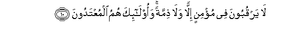 10. La yarquboona fee mu/minin illan wala thimmatan waola-ika humu almuAAtadoona