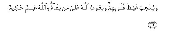 15. Wayuthhib ghaytha quloobihim wayatoobu Allahu AAala man yashao waAllahu AAaleemun hakeemun