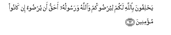 62. Yahlifoona biAllahi lakum liyurdookum waAllahu warasooluhu ahaqqu an yurdoohu in kanoo mu/mineena