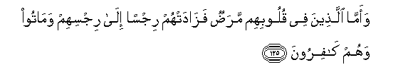 125. Waamma allatheena fee quloobihim maradun fazadat-hum rijsan ila rijsihim wamatoo wahum kafiroona