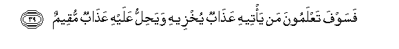 39. Fasawfa taAAlamoona man ya/teehi AAathabun yukhzeehi wayahillu AAalayhi AAathabun muqeemun