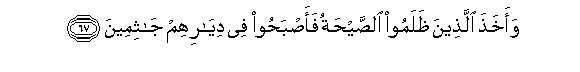 67. Waakhatha allatheena thalamoo alssayhatu faasbahoo fee diyarihim jathimeena