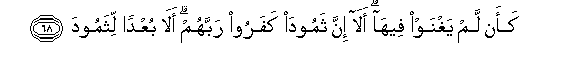 68. Kaan lam yaghnaw feeha ala inna thamooda kafaroo rabbahum ala buAAdan lithamooda