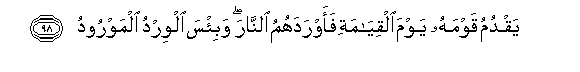 98. Yaqdumu qawmahu yawma alqiyamati faawradahumu alnnara wabi/sa alwirdu almawroodu
