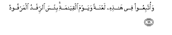 99. And they are followed by a curse in this (life) and on the Day of Judgment: and woeful is the gift which shall be given (unto them)!