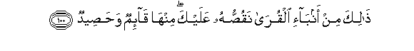 100. Thalika min anba-i alqura naqussuhu AAalayka minha qa-imun wahaseedun