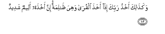 102. Wakathalika akhthu rabbika itha akhatha alqura wahiya thalimatun inna akhthahu aleemun shadeedun