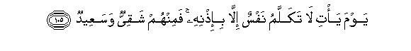 105. Yawma ya/ti la takallamu nafsun illa bi-ithnihi faminhum shaqiyyun wasaAAeedin