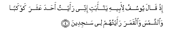 4. Ith qala yoosufu li-abeehi ya abati innee raaytu ahada AAashara kawkaban waalshshamsa waalqamara raaytuhum lee sajideena