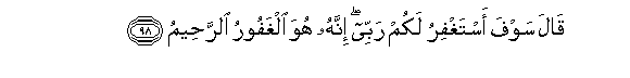 98. Qala sawfa astaghfiru lakum rabbee innahu huwa alghafooru alrraheemu
