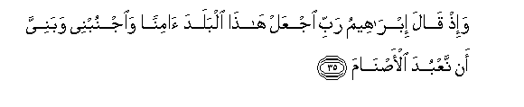 35. Wa-ith qala ibraheemu rabbi ijAAal hatha albalada aminan waojnubnee wabaniyya an naAAbuda al-asnama