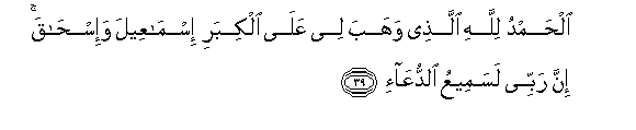 39. Alhamdu lillahi allathee wahaba lee AAala alkibari ismaAAeela wa-ishaqa inna rabbee lasameeAAu aldduAAa/-i