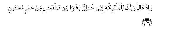 28. Wa-ith qala rabbuka lilmala-ikati innee khaliqun basharan min salsalin min hama-in masnoonin