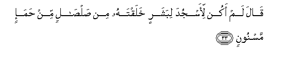 33. Qala lam akun li-asjuda libasharin khalaqtahu min salsalin min hama-in masnoonin