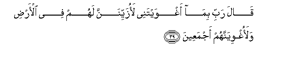 39. Qala rabbi bima aghwaytanee laozayyinanna lahum fee al-ardi walaoghwiyannahum ajmaAAeena