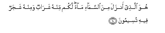 10. Huwa allathee anzala mina alssama-i maan lakum minhu sharabun waminhu shajarun feehi tuseemoona