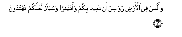 15. Waalqa fee al-ardi rawasiya an tameeda bikum waanharan wasubulan laAAallakum tahtadoona