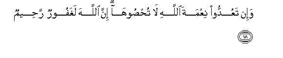 18. If ye would count up the favours of Allah, never would ye be able to number them: for Allah is Oft-Forgiving, Most Merciful.