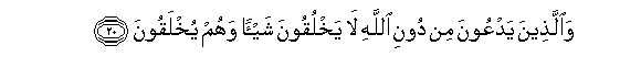 20. Waallatheena yadAAoona min dooni Allahi la yakhluqoona shay-an wahum yukhlaqoona