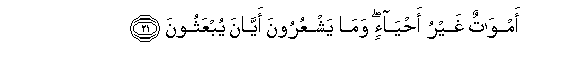 21. Amwatun ghayru ahya-in wama yashAAuroona ayyana yubAAathoona