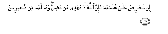 37. In tahris AAala hudahum fa-inna Allaha la yahdee man yudillu wama lahum min nasireena