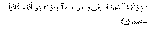 39. Liyubayyina lahumu allathee yakhtalifoona feehi waliyaAAlama allatheena kafaroo annahum kanoo kathibeena