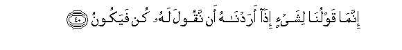 40. Innama qawluna lishay-in itha aradnahu an naqoola lahu kun fayakoonu