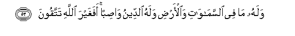 52. Walahu ma fee alssamawati waal-ardi walahu alddeenu wasiban afaghayra Allahi tattaqoona