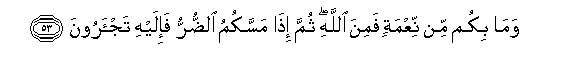 53. Wama bikum min niAAmatin famina Allahi thumma itha massakumu alddurru fa-ilayhi taj-aroona