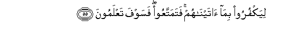 55. Liyakfuroo bima ataynahum fatamattaAAoo fasawfa taAAlamoona