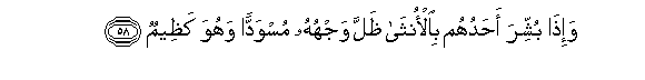 58. Wa-itha bushshira ahaduhum bialontha thalla wajhuhu muswaddan wahuwa katheemun