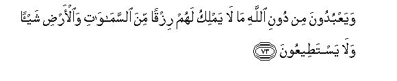 73. WayaAAbudoona min dooni Allahi ma la yamliku lahum rizqan mina alssamawati waal-ardi shay-an wala yastateeAAoona