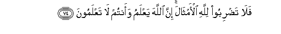 74. Fala tadriboo lillahi al-amthala inna Allaha yaAAlamu waantum la taAAlamoona