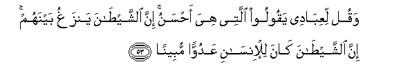 53. Waqul liAAibadee yaqooloo allatee hiya ahsanu inna alshshaytana yanzaghu baynahum inna alshshaytana kana lil-insani AAaduwwan mubeenan