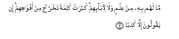 5. Ma lahum bihi min AAilmin wala li-aba-ihim kaburat kalimatan takhruju min afwahihim in yaqooloona illa kathiban