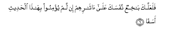 6. FalaAAallaka bakhiAAun nafsaka AAala atharihim in lam yu/minoo bihatha alhadeethi asafan