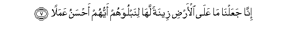 7. Inna jaAAalna ma AAala al-ardi zeenatan laha linabluwahum ayyuhum ahsanu AAamalan