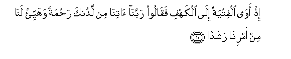 10. Ith awa alfityatu ila alkahfi faqaloo rabbana atina min ladunka rahmatan wahayyi/ lana min amrina rashadan