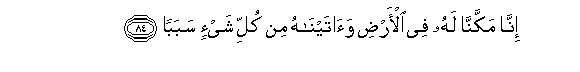 84. Inna makkanna lahu fee al-ardi waataynahu min kulli shay-in sababan