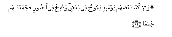 99. Watarakna baAAdahum yawma-ithin yamooju fee baAAdin wanufikha fee alssoori fajamaAAnahum jamAAan