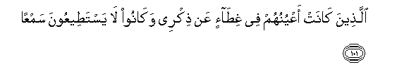 101. Allatheena kanat aAAyunuhum fee ghita-in AAan thikree wakanoo la yastateeAAoona samAAan