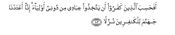 102. Afahasiba allatheena kafaroo an yattakhithoo AAibadee min doonee awliyaa inna aAAtadna jahannama lilkafireena nuzulan