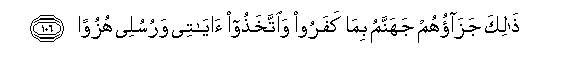 106. Thalika jazaohum jahannamu bima kafaroo waittakhathoo ayatee warusulee huzuwan