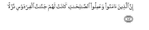 107. Inna allatheena amanoo waAAamiloo alssalihati kanat lahum jannatu alfirdawsi nuzulan