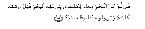 109. Qul law kana albahru midadan likalimati rabbee lanafida albahru qabla an tanfada kalimatu rabbee walaw ji/na bimithlihi madadan