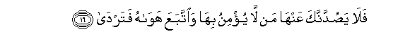 16. "Therefore let not such as believe not therein but follow their own lusts, divert thee therefrom, lest thou perish!"..