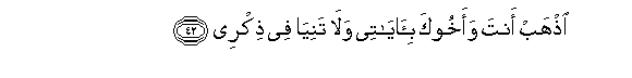 42. Ithhab anta waakhooka bi-ayatee wala taniya fee thikree