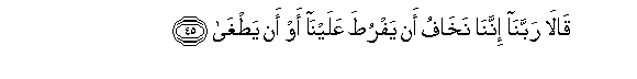 45. Qala rabbana innana nakhafu an yafruta AAalayna aw an yatgha