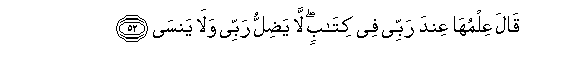 52. Qala AAilmuha AAinda rabbee fee kitabin la yadillu rabbee wala yansa